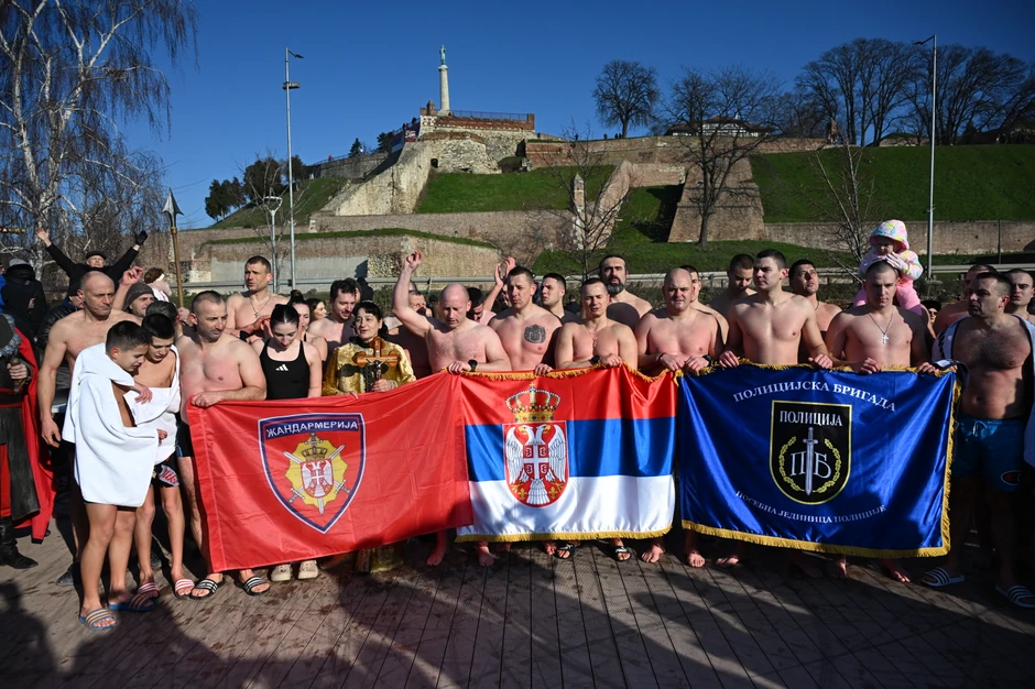 ОДРЖАНО ПЛИВАЊЕ ЗА ЧАСНИ КРСТ ИСПОД БЕОГРАДСКЕ ТВРЂАВЕ: СВИХ 33 КУПАЧА ЗАЈЕДНО ИЗНЕЛА КРСТ ИЗ РЕКЕ