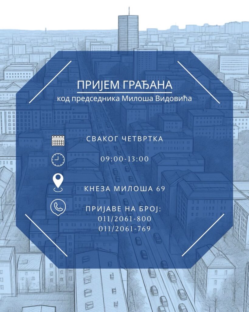 Пријем грађана одржава се сваког четвртка од 9 до 13 часова, у улици Кнеза Милоша 69. За разговор је неопходна претходна пријава.