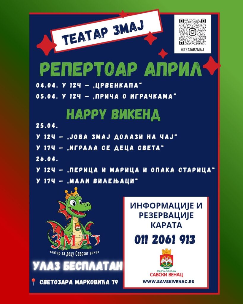 Све представе биће изведене у Театру Змај на адреси Светозара Марковића 79. Улаз је бесплатан, а за додатне информације и резервације доступан је контакт 011/2061-913.