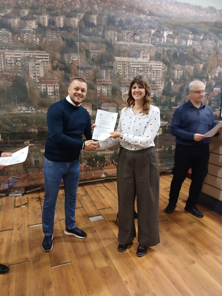Сертификате о успешно завршеној обуци данас су уручили Драгомир Барџић, испред Градске општине Раковица, и Весна Живковић Костић, начелница Одељења за програме запошљавања и предузетништва НСЗ.